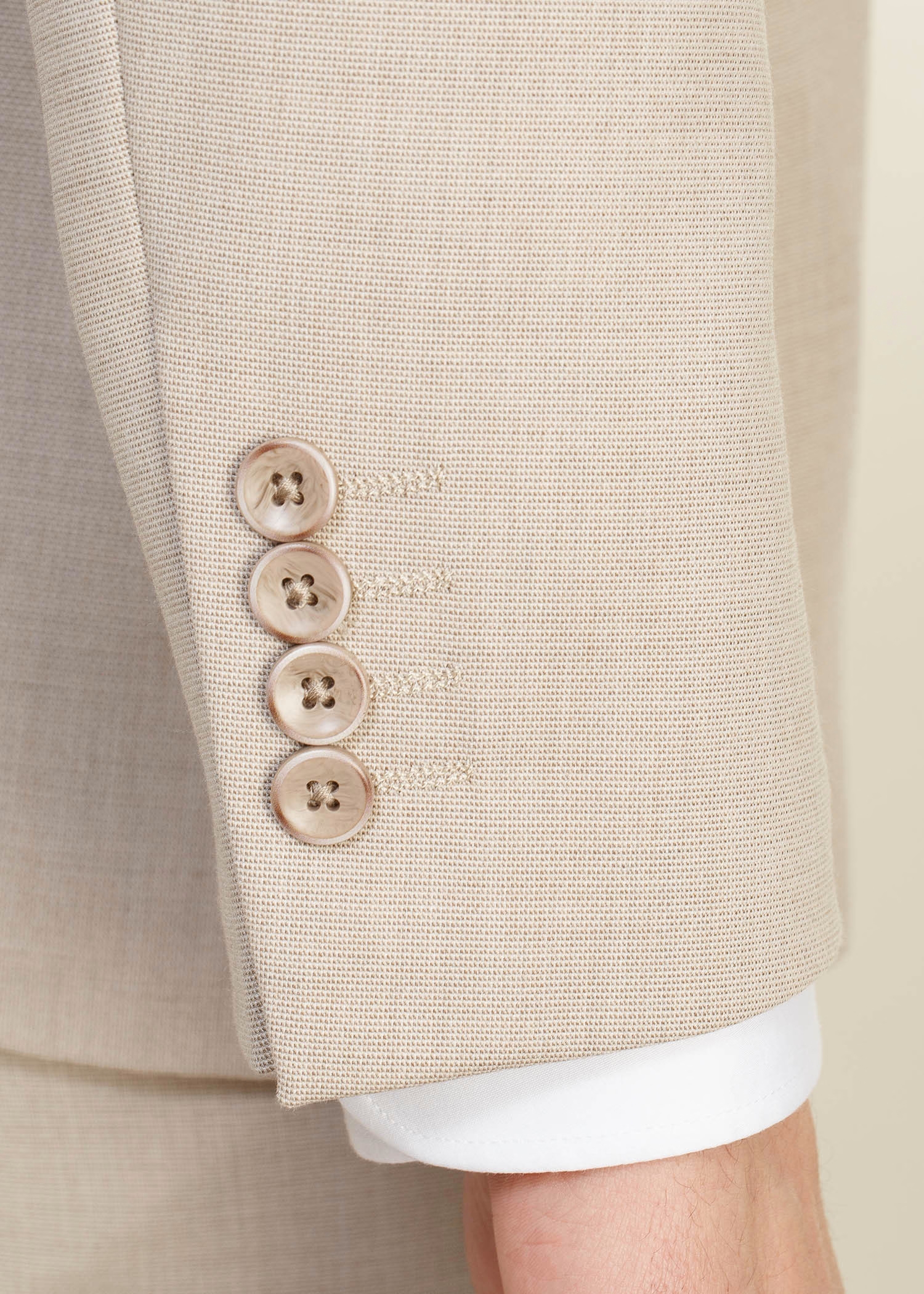 Traje de corte REGULAR FIT, el traje clásico por excelencia entre nuestros clientes. Solapa picada al canto, bolsillos rectos y pantalón de bajo 19 cm (talla 40).